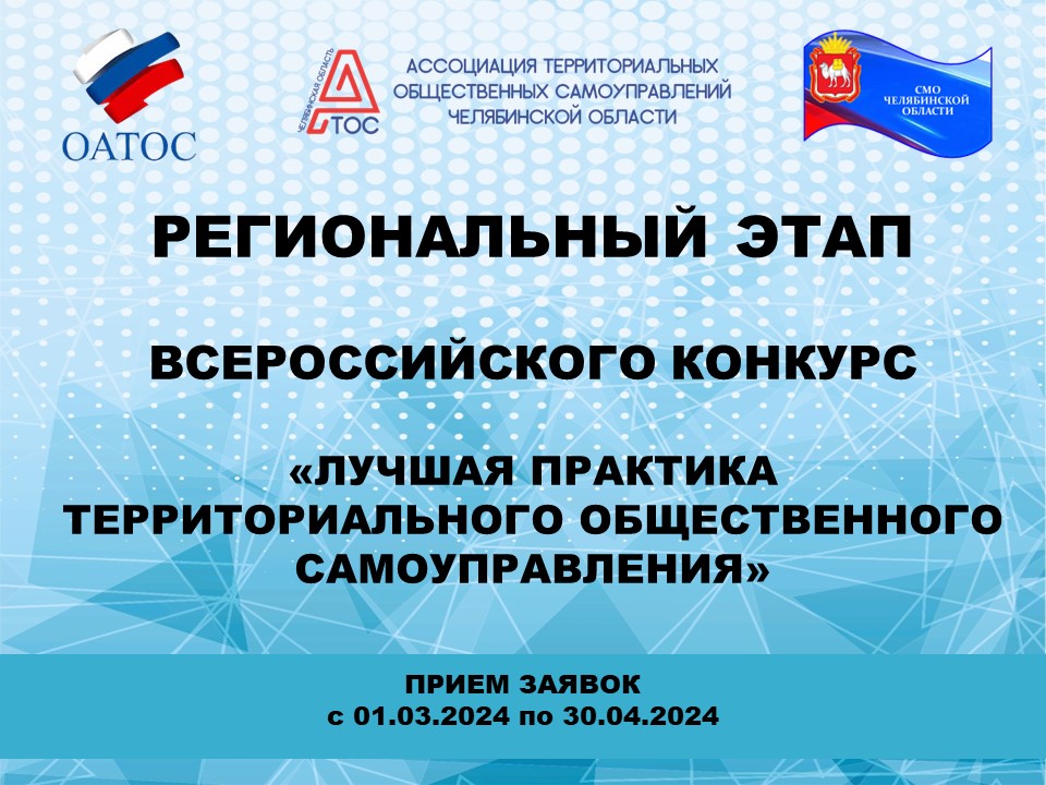 Ассоциация территориальных общественных самоуправлений Челябинской области совместно с Советом муниципальных образований региона объявили о региональном этапе Всероссийского конкурса «Лучшая практика территориального общ