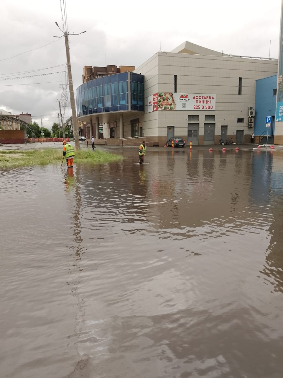 На данный момент подтопление наблюдается на парковке ТРК "Слава", т.к. ливневые каналы не справляются с объемами воды. В диспетчерскую службу города поступают точечные жалобы на подтопление частного сектора.