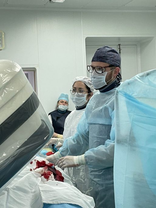 Операцию провели на базе отделения рентгенхирургических методов диагностики и лечения. Хирургическая бригада работала под руководством врача-рентгенолога Ивана Мамыкина. В прошлом году он прошел обучение методике эндоваскулярной эмболизации ветвей коленной артерии.