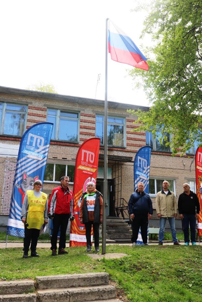 Право поднять на Фестивале государственный флаг нашей страны удостоилась Нурания Латыпова, член команды машгородка «Нордики». Ей в этом году исполнилось 100 лет.