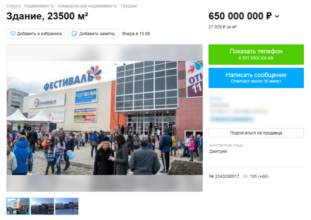 В марте 2022 года на известном сайте появилось объявление о продаже торгового комплекса "Фестиваль" в Озёрске, мы об этом тогда рассказывали (ссылка) .