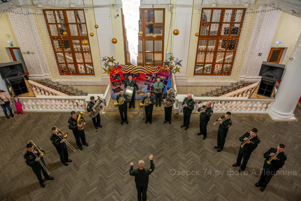 В фойе играл духовой оркестр штаба 93-й ордена Красной Звезды дивизии войск национальной гвардии Российской Федерации под управлением подполковника Алексея Донского.