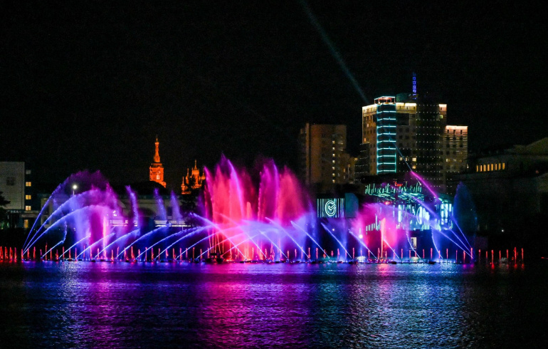 В Челябинске открыт умный плавающий фонтан