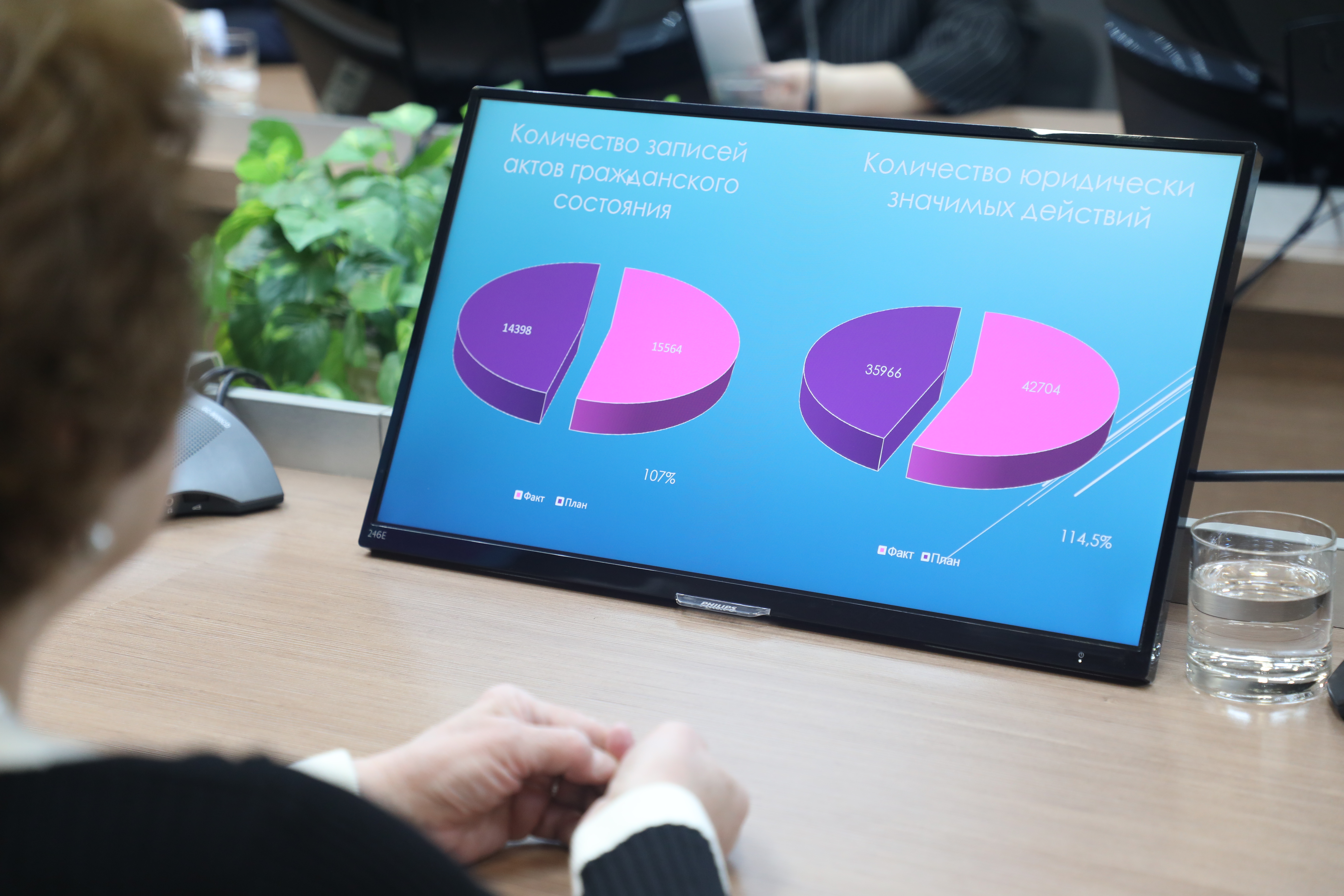 По количеству зарегистрированных актов гражданского состояния плановый показатель для города составлял 14 398 записей актов. Однако, благодаря усердной работе, это число было превышено, и в 2024 году зарегистрировано 15 514 актов, что соответствует выполнению плана на 107%.