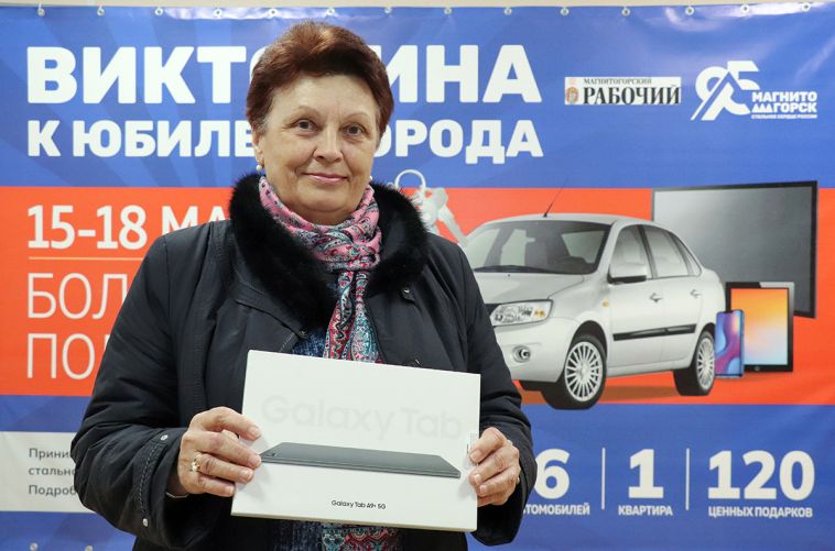 Ольге Комковой вручили планшет. Первый победитель забрал свой приз. Щедрая на призы викторина , приуроченная к 95-летию Магнитогорска, стартовала 15 марта.