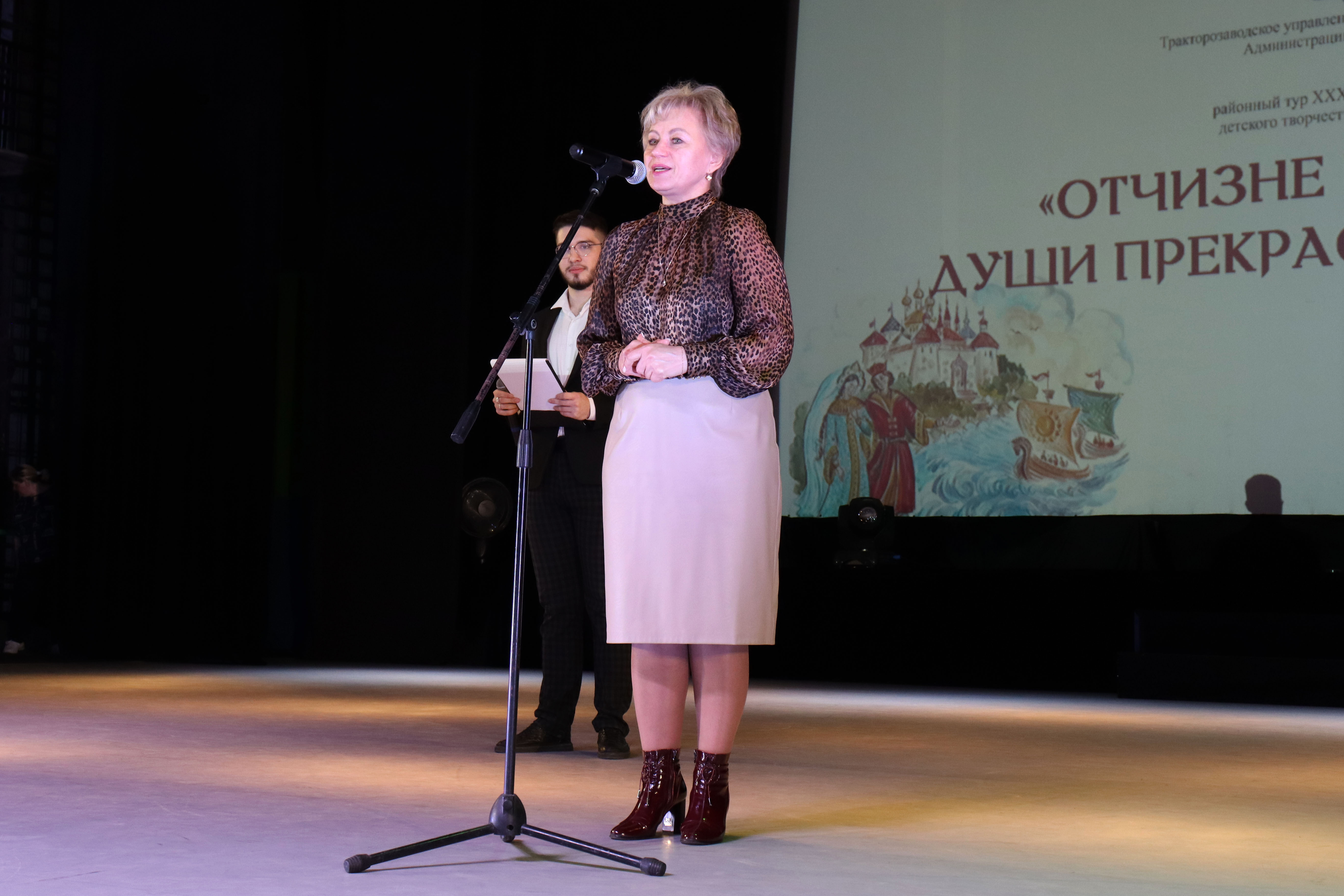От имени Главы Тракторозаводского района Юрия Кузнецова со сцены к юным участникам фестиваля с приветственным словом обратилась исполняющий обязанности заместителя главы района Татьяна Савельева.