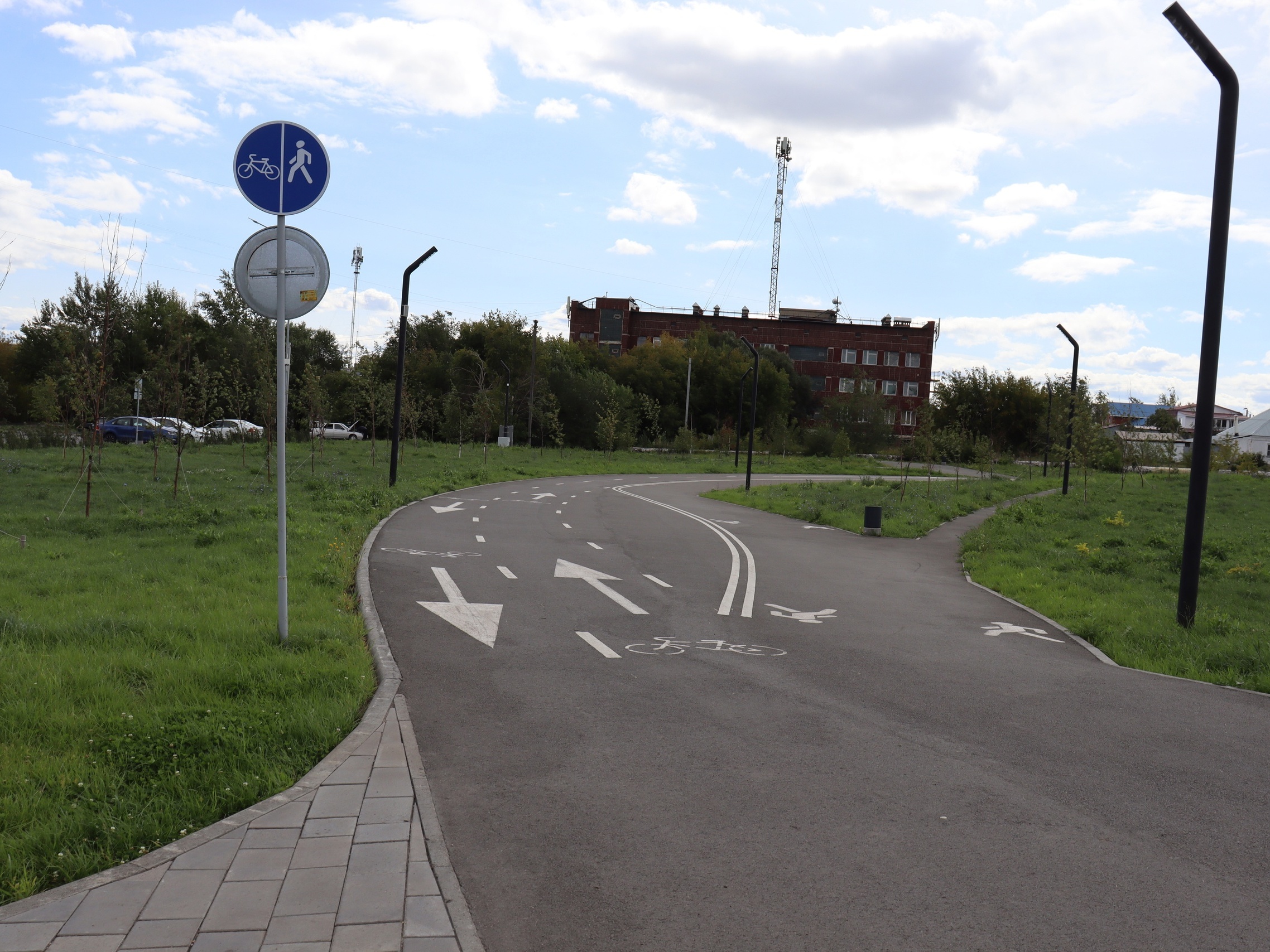 В парке были реализованы прогулочные зоны, кольцевая велодорожка и беговая дорожка, установлено три детских площадки в экостиле для разных возрастов детей, построено несколько спортивных объектов для возможности заниматься разными видами спорта.