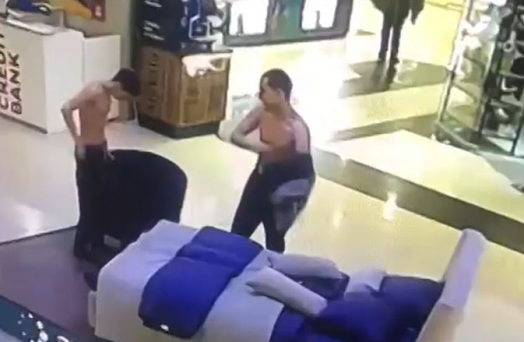 фото: Группа охранных предприятий «Право роста»Двое молодых магнитогорцев решили неудачно пошутить в одном из торговых центров города. Странное поведение попало на видео с камеры наблюдения. На записи видно, как парни подошли к выставленной в зале кровати и разделись до нижнего белья. Затем оба легли в кровать и залезли под одеяло, где недолго имитировали неприличные действия. Вскоре молодые люди встали с кровати, спешно оделись и отошли в сторону.