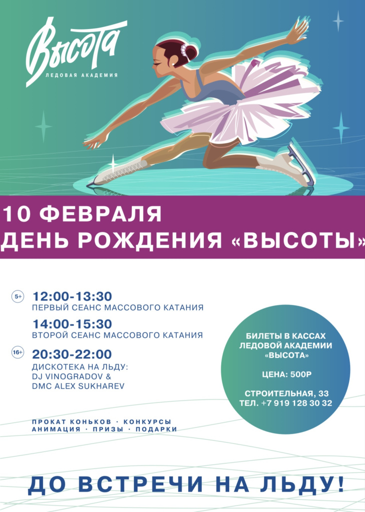 В субботу, 10-го февраля, Ледовая Академия «Высота» приглашает жителей города на праздник в честь своего дня рождения!