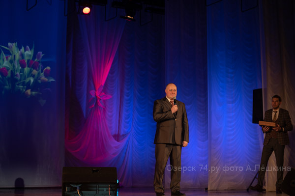 В начале вечера для поздравления на сцену поднялись председатель Собрания депутатов Озёрского городского округа Сергей Гергенрейдер и руководитель общественной приёмной Губернатора Челябинской области в Озёрском городском округе, координатор проекта «Женское движение Единой России» Валентина Сылько.