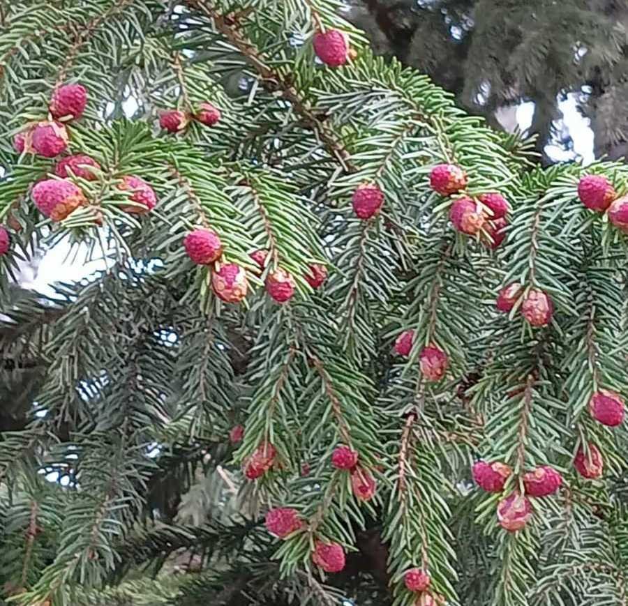Одной из наших постоянных читательниц повезло. Она сфотографировала цветение ели и прислала нам. Вот это фото.